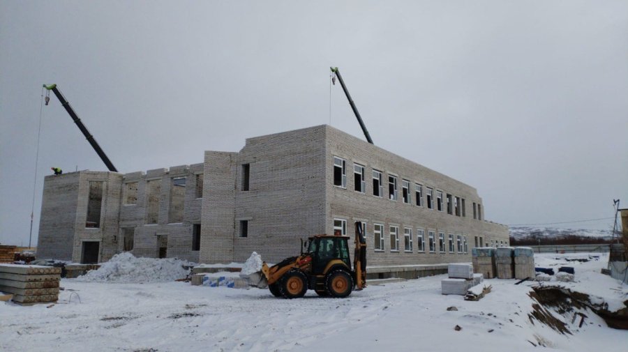 Строительство нового корпуса начальной школы продолжается в Печенге. На объекте завершены подготовительные работы, земляные работы для устройства фундаментов и ростверка, в том числе под возведение перехода между основным зданием и новой пристройкой. Рядом установлен накопительный резервуар.