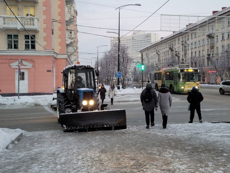 Ночью дорожники погрузили и вывезли смет на улицах Чумбарова-Лучинского, Саши Ковалева, Профессора Сомова, на проспекте Кольском, на тротуарах улицы Полярные Зори.