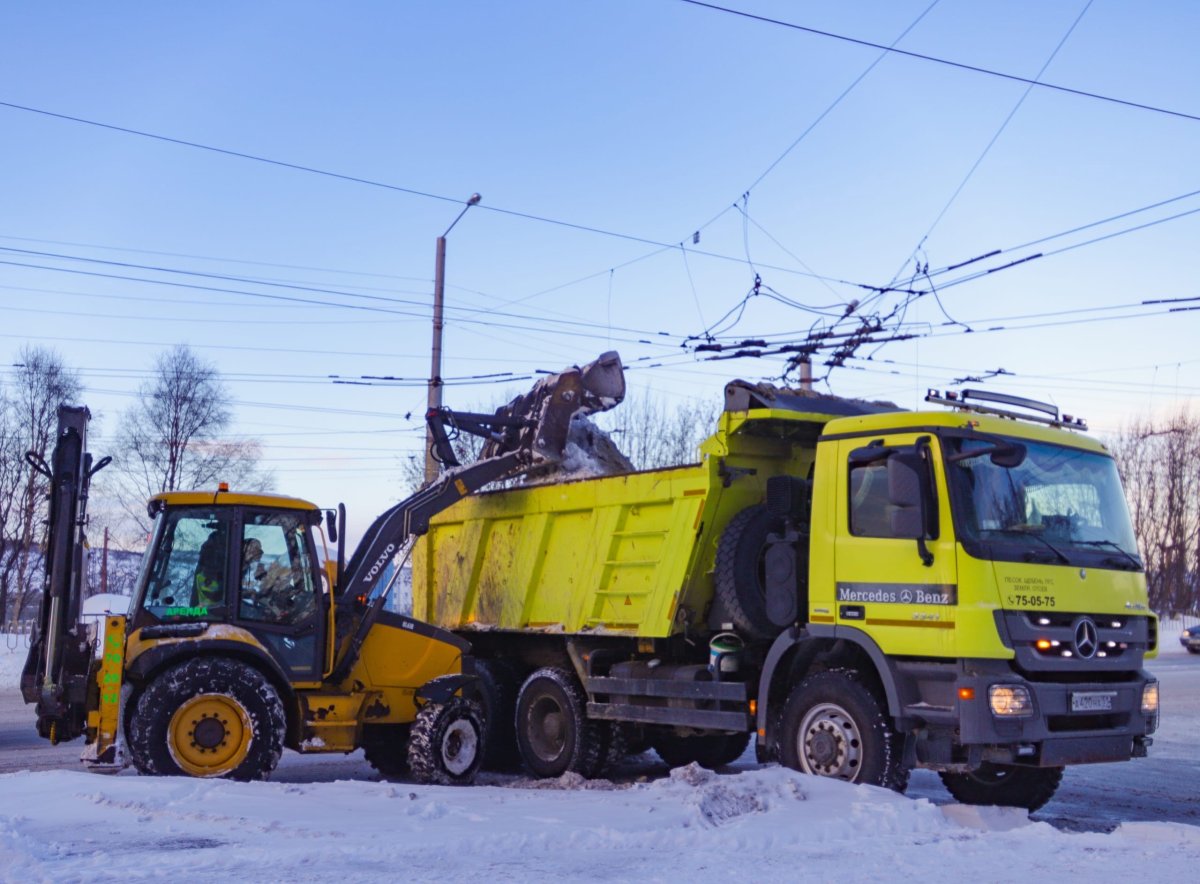 Выполнены работы по погрузке и вывозу смета в ночь на следующих участках: улица Адмирала флота Лобова в районе дома № 9 (заездной карман); тротуары по проспекту Героев—североморцев (в районе парка на Семеновском озере); улица Чумбарова-Лучинского; улица Скальная; проезд Северный в районе домов №№ 13-21.