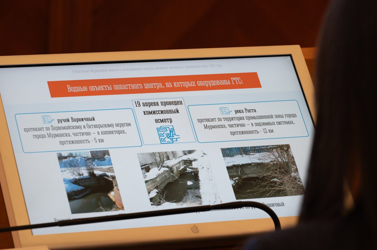 Как сообщила министр природных ресурсов, экологии и рыбного хозяйства Зинаида Середа, начиная с апреля сотрудниками Минприроды организованы комиссионные осмотры порядка тридцати водных объектов, расположенных на территории Мурманска, на предмет отсутствия препятствий для прохождения природных вод и поступления поверхностного стока в водные объекты.