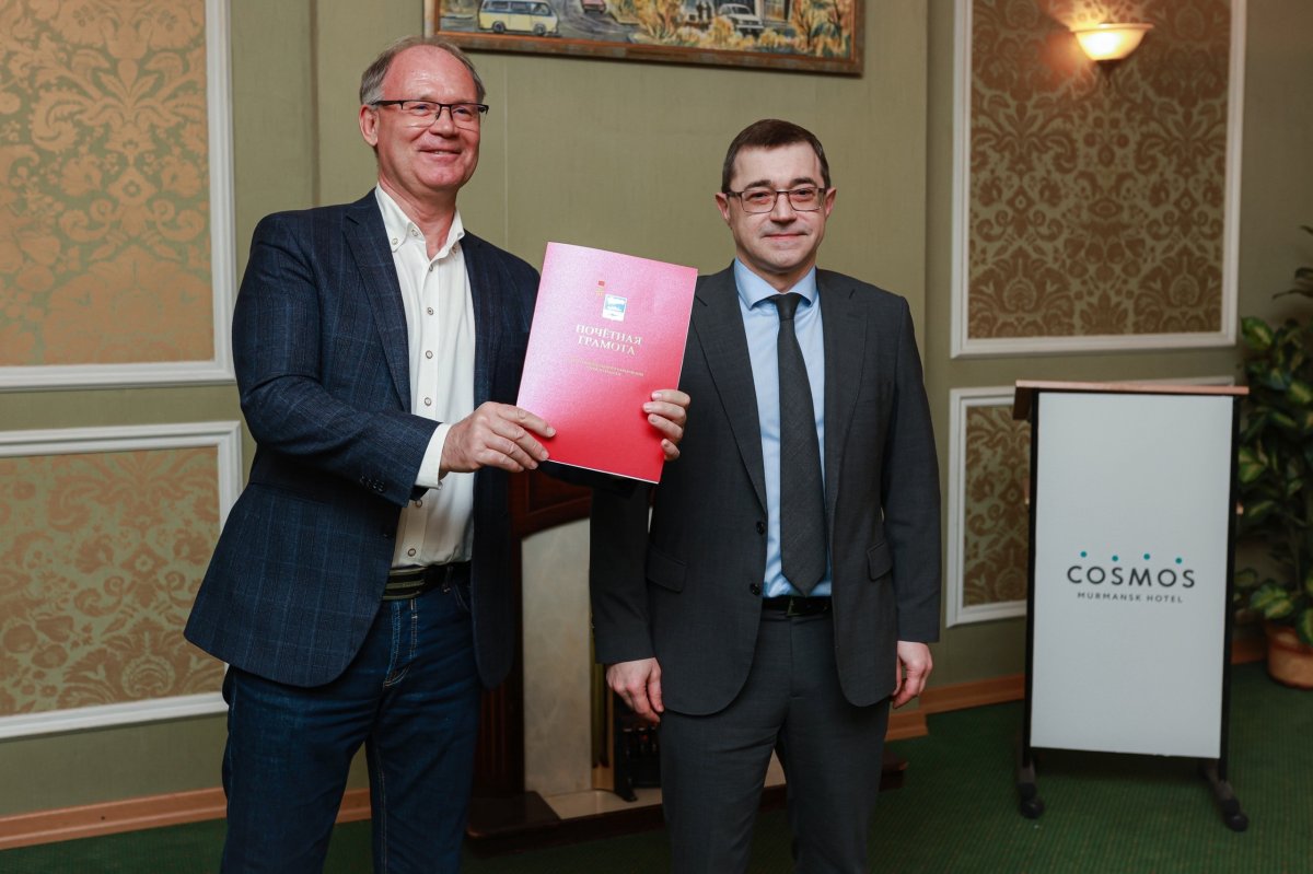 Генерального Управляющего Cosmos Murmansk Hotel Андрея Милохина наградили почётной грамотой. Награду вручил глава муниципального образования города Мурманска Игорь Морарь.