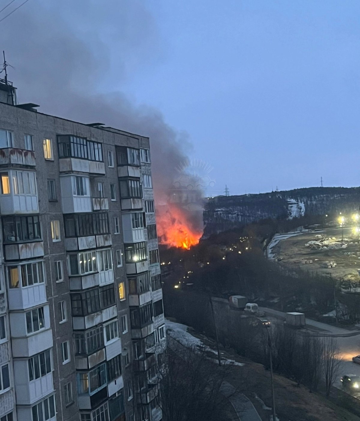 Предварительная площадь пожара составляет 70 квадратных метров. На месте продолжают работать пожарно-спасательные подразделения, сообщили в ГУ МЧС по Мурманской области.