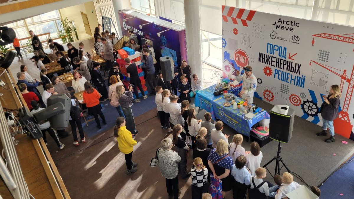Впрочем, фестиваль научных открытий Arctic Wave был призван не только объединить юных изобретателей, но и рассказать простым понятным языком ребятам о точных науках и научных открытиях, о том, какую огромную роль даже в строительстве города играет инженерная мысль. Для этого на двух этажах местного ДК развернулись целые лаборатории.