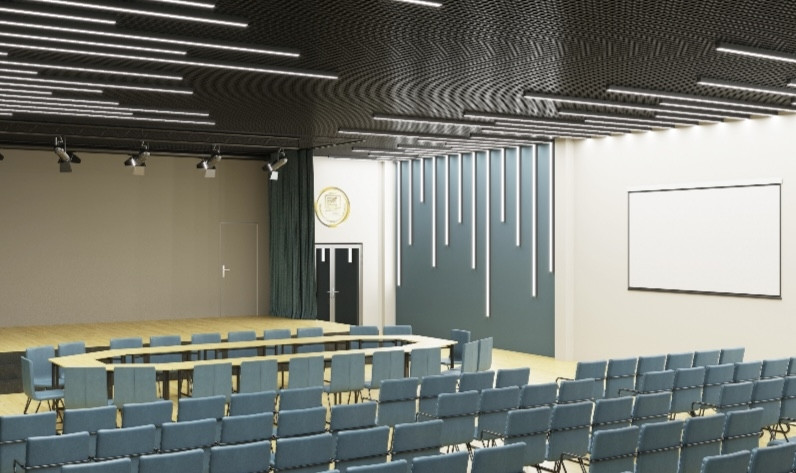 Дизайн-проект предполагает, что после ремонта актовый зал станет многофункциональной площадкой для проведения праздников, научных конференций и круглых столов.