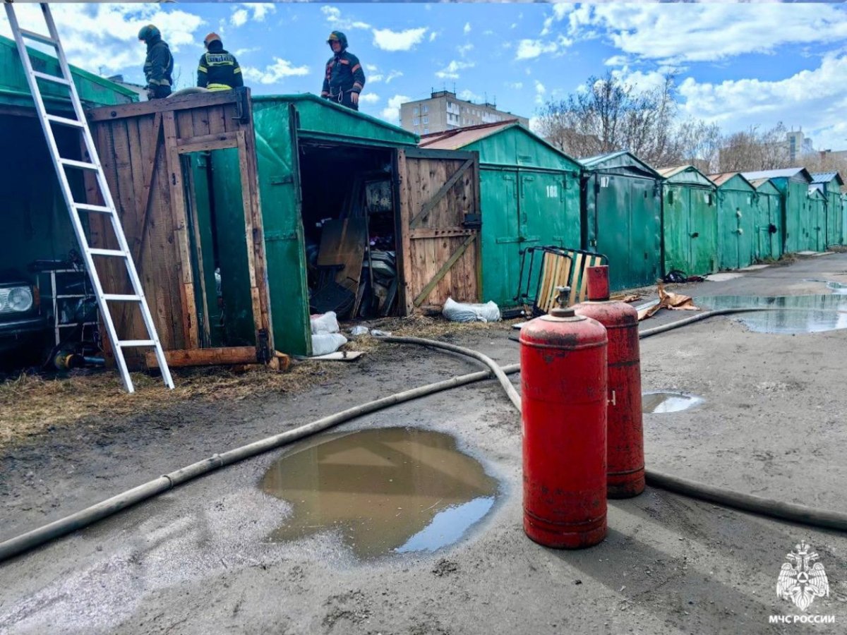 Днём 18 мая в Мурманске горели гаражи. Сообщение о возгорании двух гаражей в АГК №16 на улице Гвардейская поступило в 12:51.