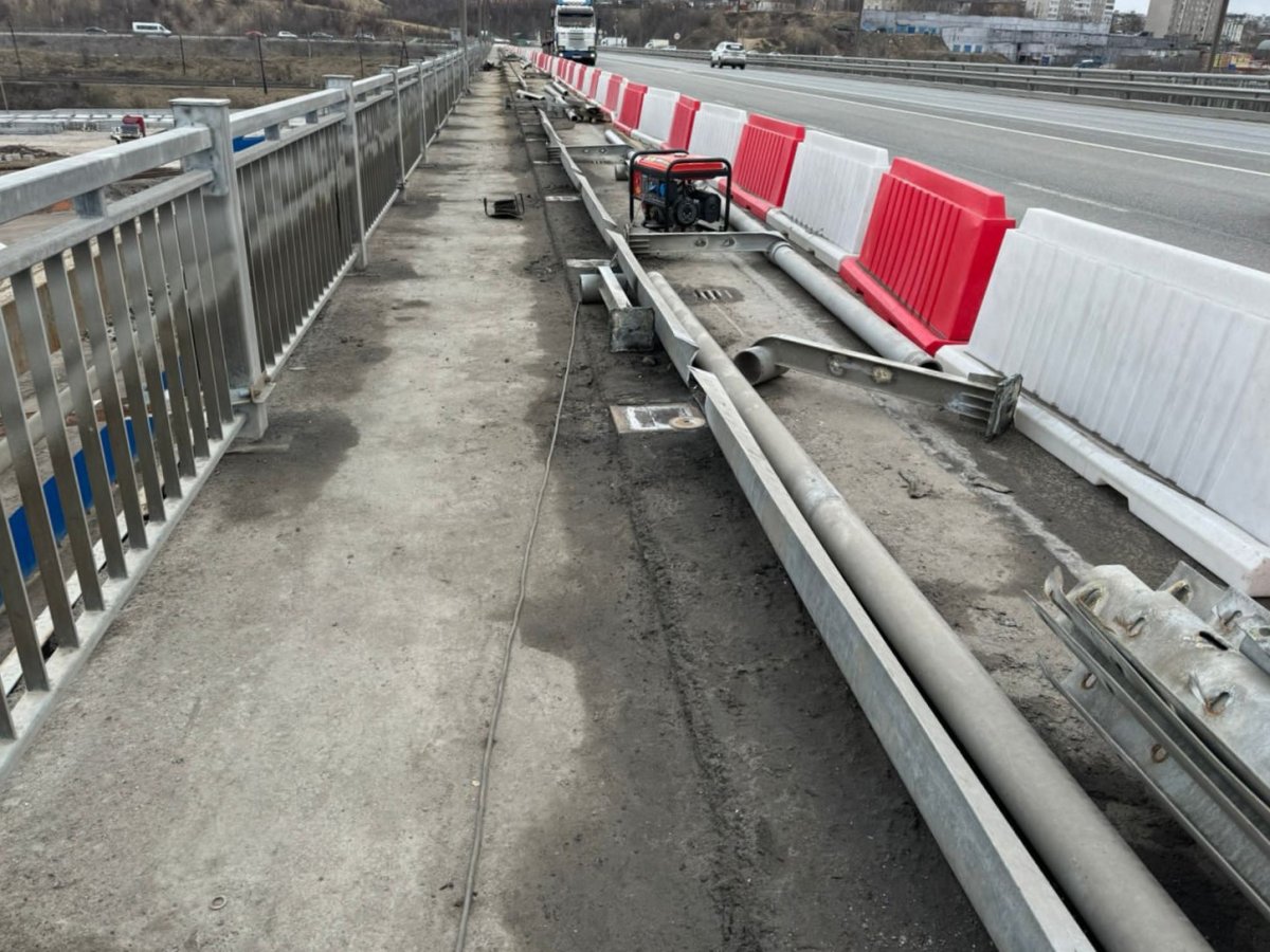 В настоящее время подрядная организация приступила к выполнению работ по демонтажу барьерного ограждения и цоколей под него, а также к демонтажу водоотводного экрана.