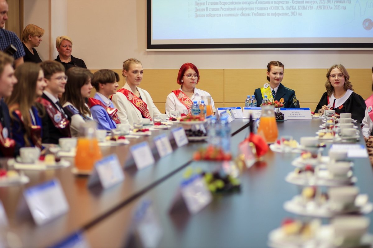 Участие в торжественной встрече приняли 26 молодых людей – выпускники школ № 5, 31, 36, 49, лицея № 2, гимназий № 1, 2, 5, 6, 10, Мурманского академического лицея, Мурманского международного лицея, Мурманского политехнического лицея и Кадетской школы. Они достигли наибольших успехов в олимпиадном движении школьников и научно-исследовательской деятельности, в творчестве и спорте, в образовательно-социальных проектах президентской платформы "Россия – страна возможностей": "Большая перемена", "Российское движение школьников – территория самоуправления" и "Доброволец России".