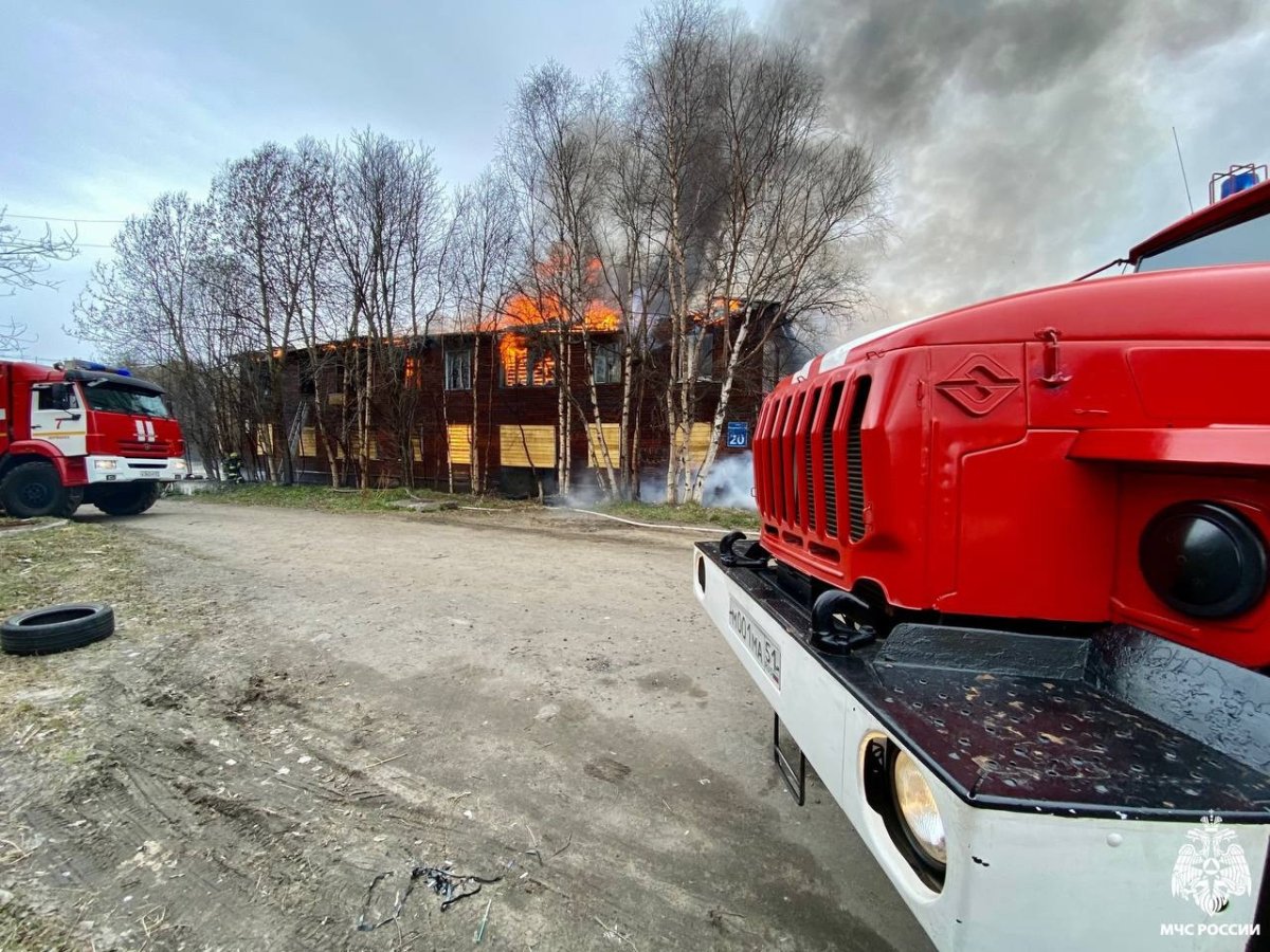 Ранним утром в воскресенье, 26 мая, начался пожар в двухэтажном нежилом доме на улице Первомайской, 20 в Мурманске. Сообщение об этом поступило по единому номеру 112 в 5.45.
