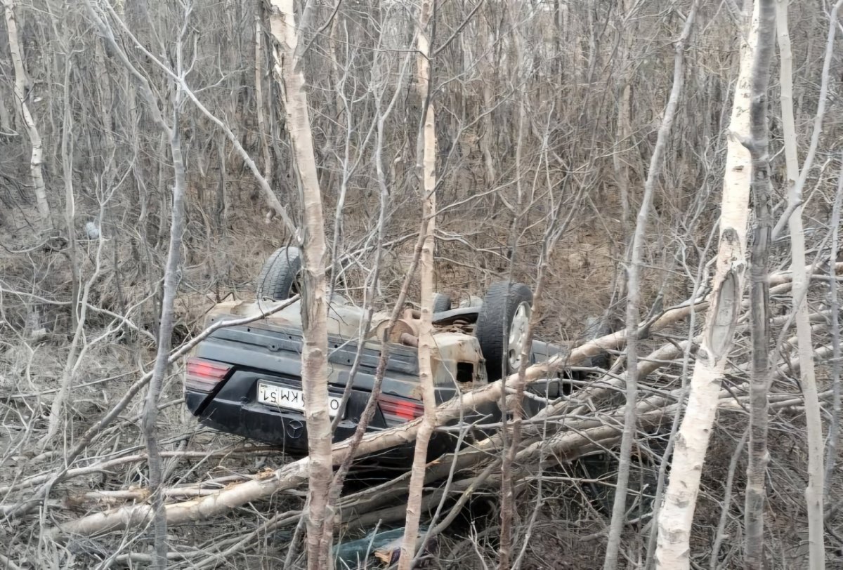 Днём 26 мая 2024 года на 17 км Мишуково-Снежногорск произошло ДТП. Легковой автомобиль Mercedes-Benz съехал в кювет и опрокинулся.