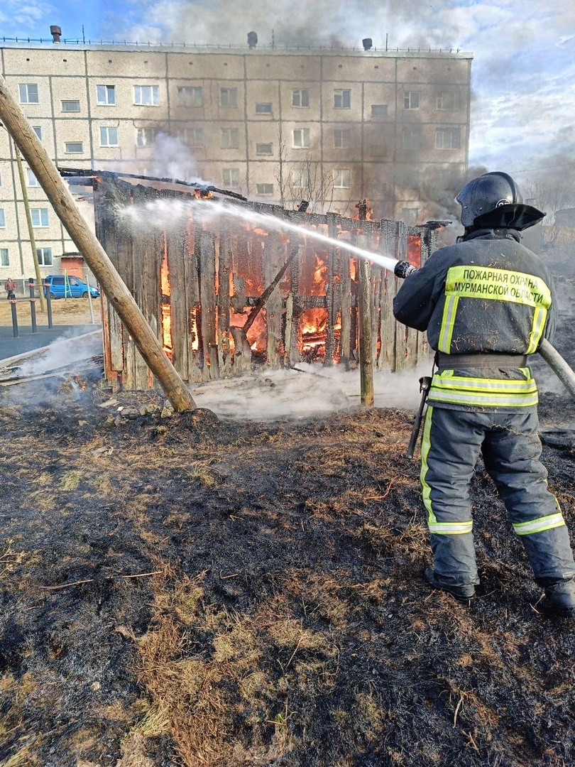 Поздним вечером в понедельник, 27 мая, начался пожар в строении, расположенном в 20 метрах от дома на улице Станция Полярные Зори, 6 в Полярных Зорях. Сообщение об этом поступило по единому номеру 112 в 23:40.