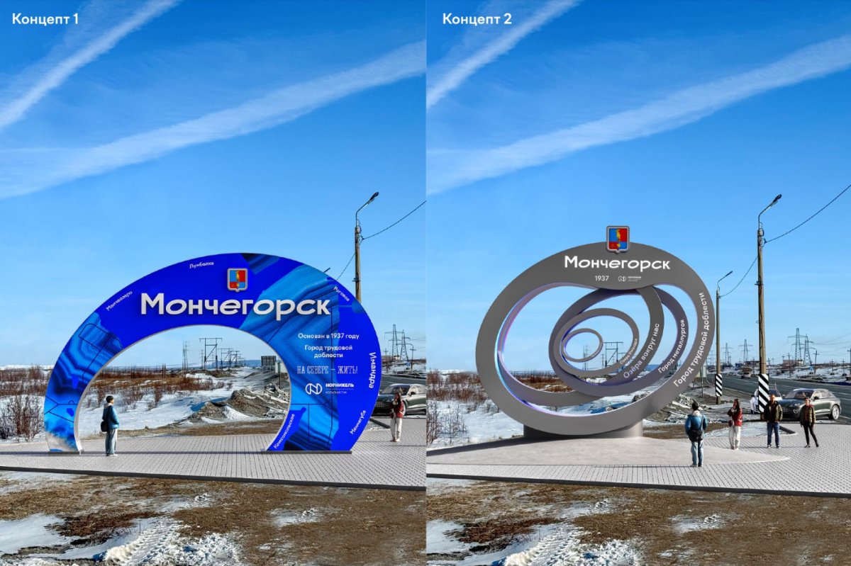 Изображения: эскизы стелы Мончегорск / администрация города Мончегорска