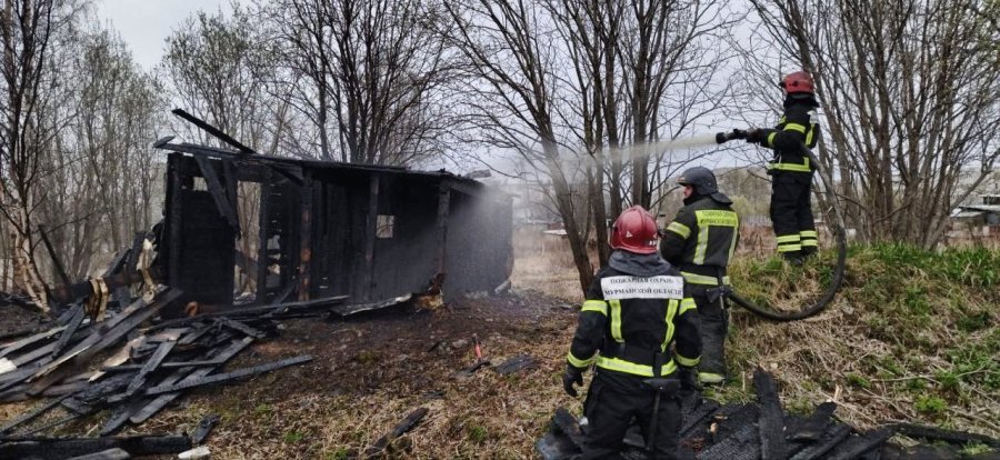 Вечером в среду, 29 мая, начался пожар в строениях около дома на улице Жемчужной, 19 в Апатитах. Сообщение об этом поступило в 18.25 по единому номеру 112.