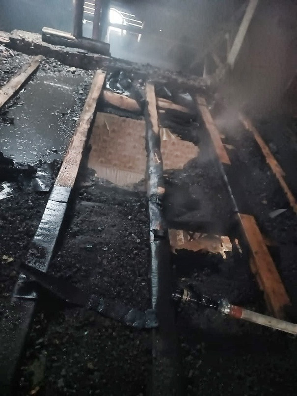 В здании сгорела часть пола и чердака на площади, на втором этаже здания закопчены стены.