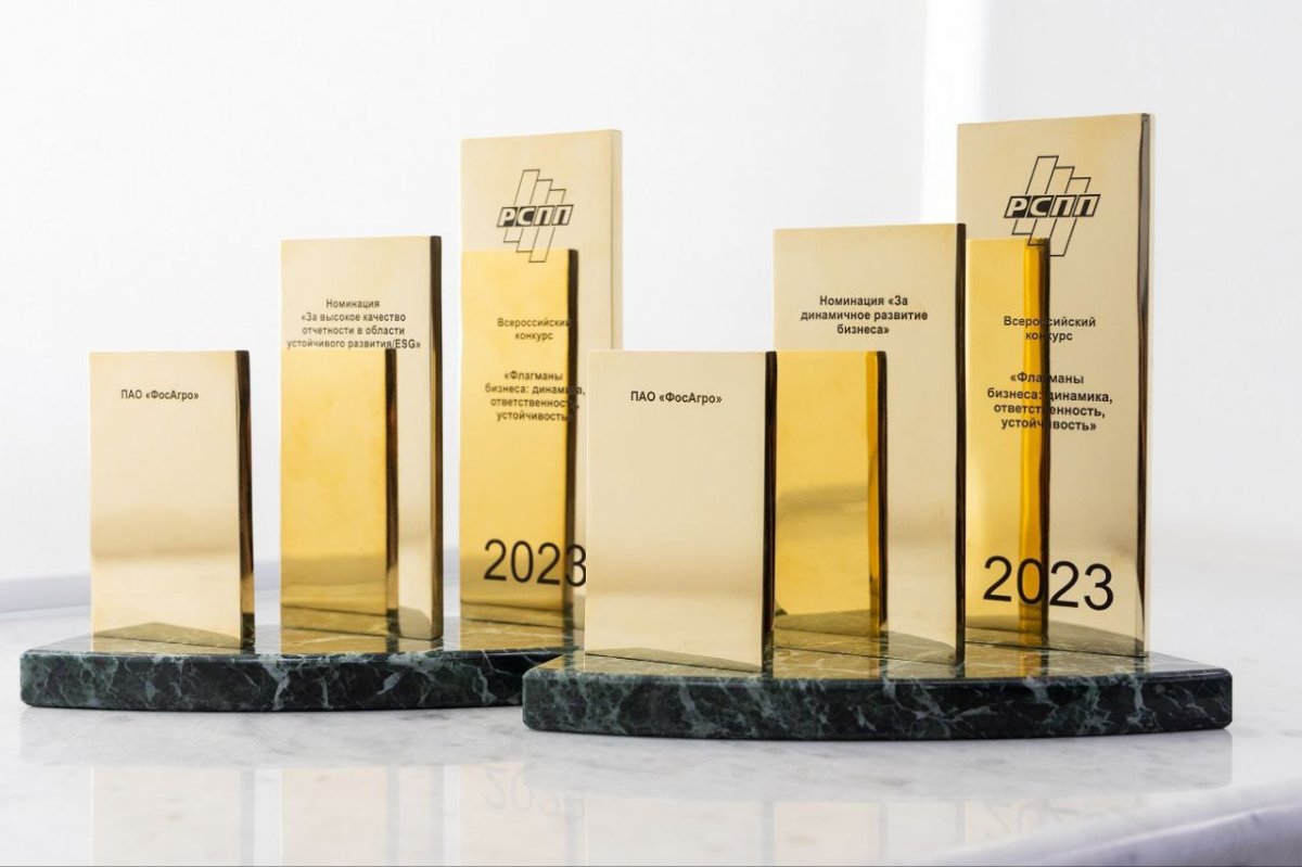 У Группы «ФосАгро» снова есть повод для гордости. Компания стала победителем конкурса Российского союза промышленников и предпринимателей (РСПП) «Флагманы бизнеса: динамика, ответственность, устойчивость – 2023» сразу в двух номинациях – «За динамичное развитие бизнеса» и «За высокое качество отчётности в области устойчивого развития/ESG».