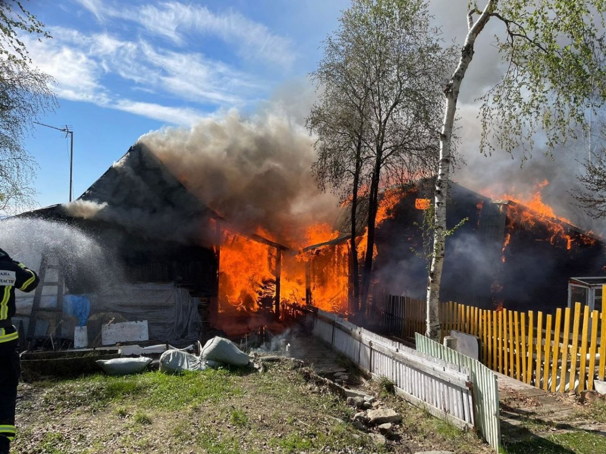 Днём в четверг на берегу Верхнетуломского водохранилища загорелся деревянный дом.