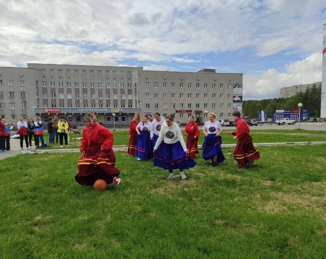 На центральной площади города состоялся турнир по национальным видам спорта на Кубок Главы города Оленегорска. Команады соревновались в саамском футболе, метании аркана, прыжках через нарты.