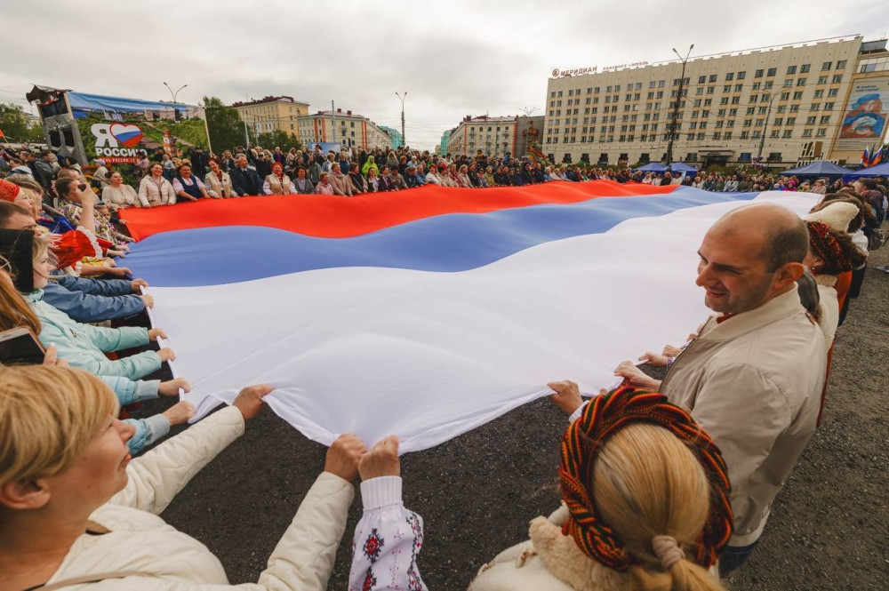 Ярким событием стала патриотическая акция на площади Пять Углов, когда под песню «Флаг моего государства» мурманчане развернули большой триколор.
