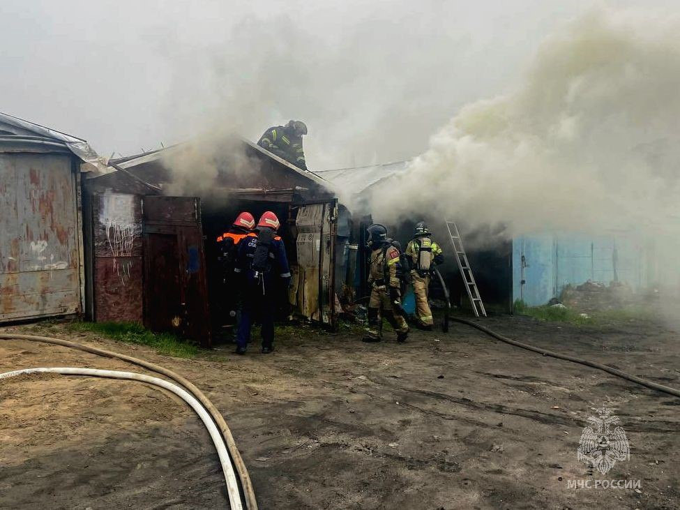 В Видяево на территории гаражного кооператива горел гараж. Возгорание произошло вечером 13 июня.