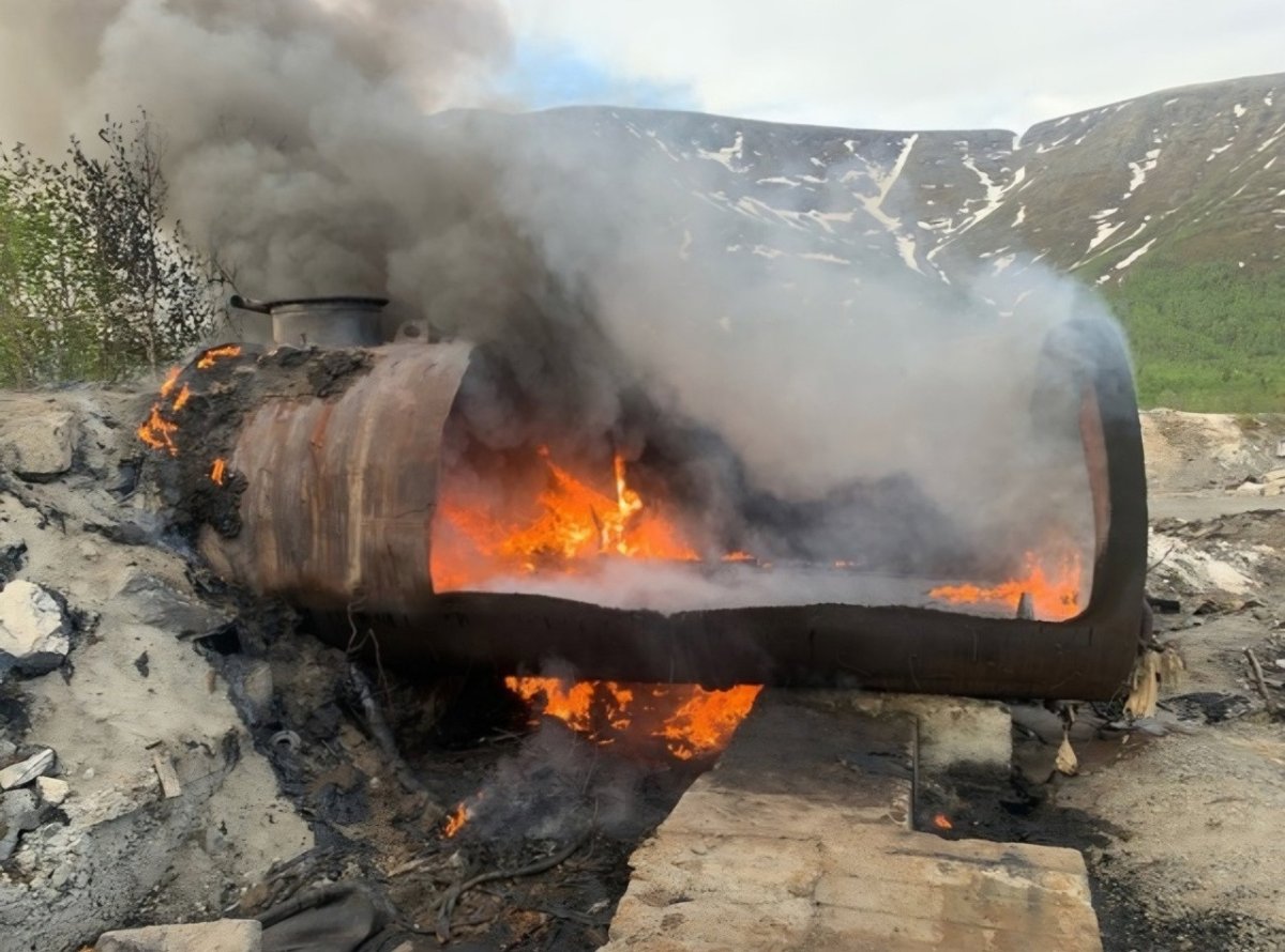Ранним утром в пятницу, 14 июня, по дороге на Расвумчоррский рудник в Кировске загорелась металлическая цистерна. Сообщение об этом поступило по единому номеру 112 в 5.21.