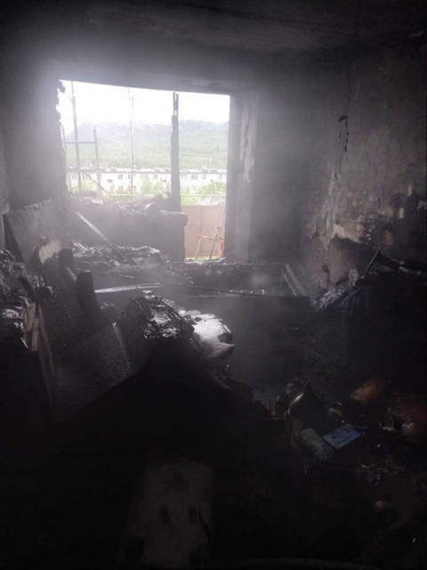 В результате пожара комната в однокомнатной квартире на третьем этаже выгорела полностью на площади 18 кв. метров.