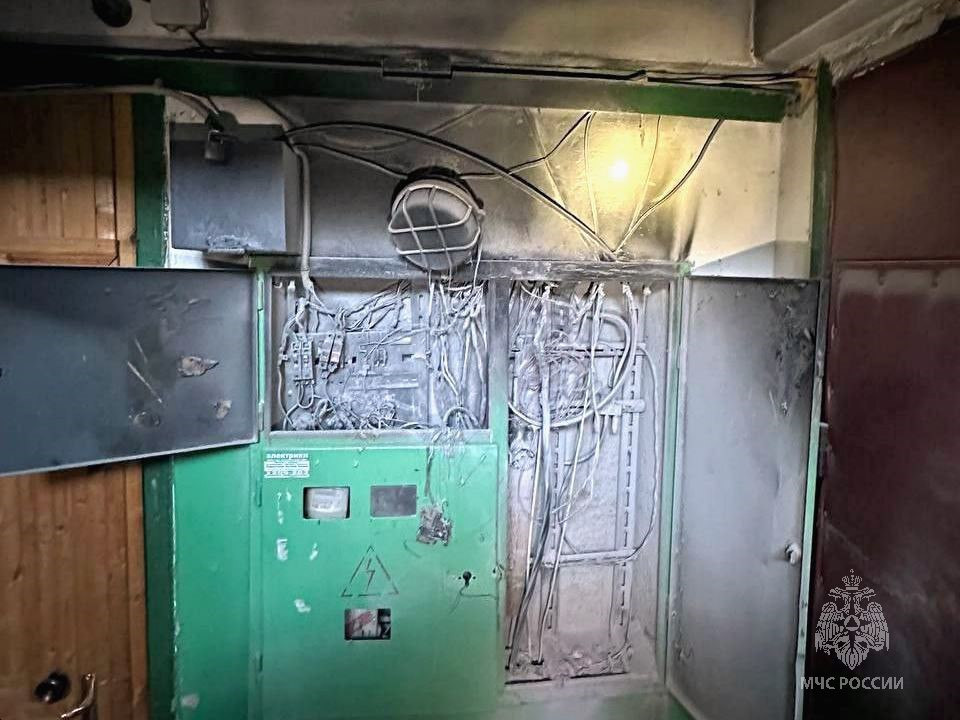 В результате пожара уничтожены и повреждены устройства учета, защиты и распределения электроэнергии, а также электрические провода и слаботочные сети, располагавшиеся в отсеках электрощита, часть стен и потолка первого этажа лестничной клетки закопчены продуктами горения. Пожар ликвидирован огнетушителем. Погибших и травмированных нет. Причина пожара электротехнического характера.
