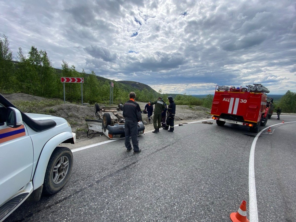 На объездной дороге в Кировске опрокинулся автомобиль ИЖ Ода. Об этом сообщили в Управлении по ГОЧС и ПБ Мурманской области.