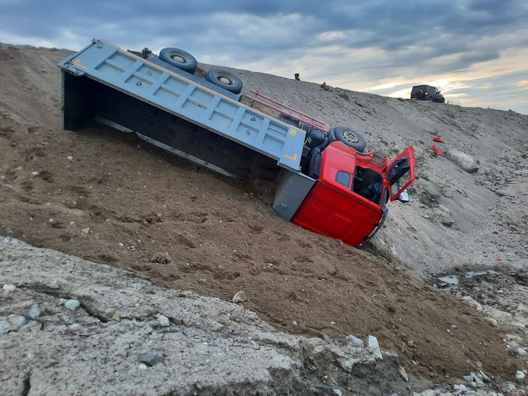 Вечером во вторник, 18 июня, на 22 км автоподъезда к селу Териберка с дороги съехал в глубокий кювет и опрокинулся на бок грузового автомобиль Sany. Сообщение об этом поступило на единый номер тревожных служб 112 в 22:03.