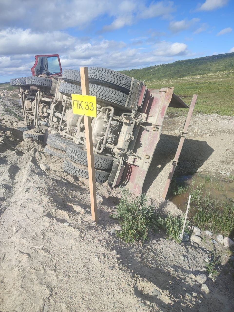 Днем в четверг, 4 июля, на автоподъезде к Териберке грузовой автомобиль КАМАЗ съехал с дорожного полотна в кювет с последующим опрокидыванием на бок. Сообщение об этом поступило по единому номеру тревожных служб 112 в 15:22. О пострадавших не сообщается.