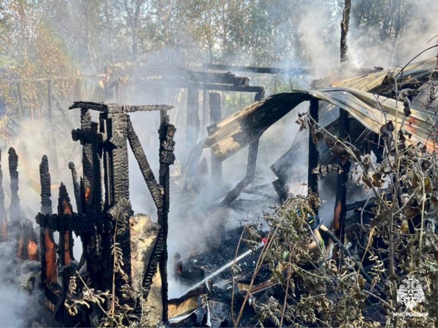 "В результате происшествия полностью разрушен жилой дом, сгорели предметы мебели на площади 60 квадратных метров, обгорел забор на площади 20 квадратных метров, огнем повреждены беседка, деревянный помост, лестницы", - сообщили в пресс-службе ведомства.