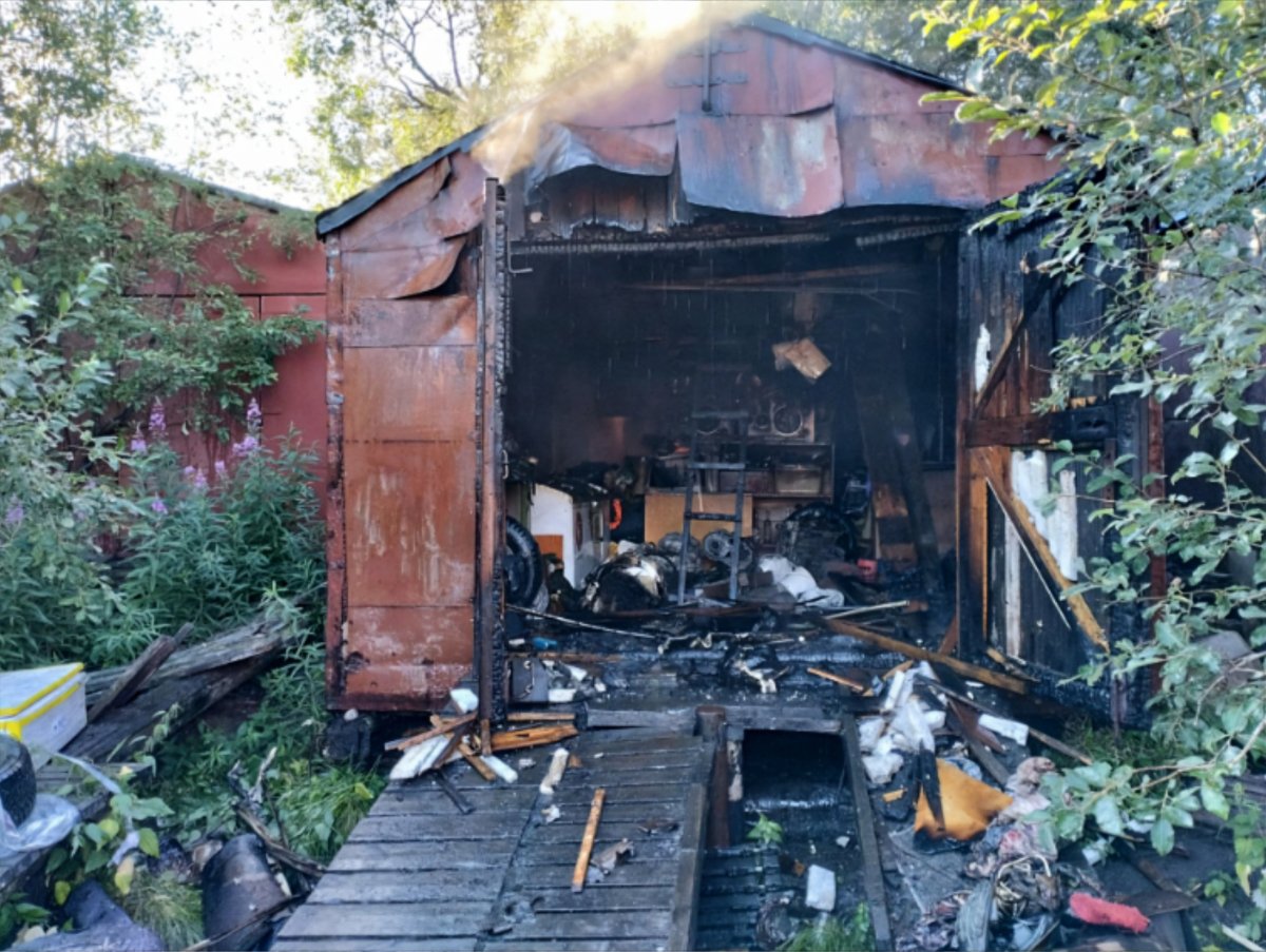 Огонь повредил внутренние стены деревянно-металлического гаража по всей площади 24 кв. метров.
