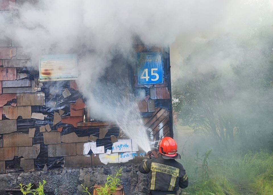 Днём 10 августа 2024 года в Мурманске на Калинина загорелось деревянный двухэтажный дом. На месте происшествия работали дежурные караулы ПЧ-11 Мурманского филиала ГПС и ПСЧ-4.