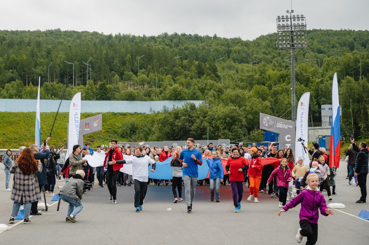Традиционный спортивный забег пройдет в День государственного флага России, 22 августа в мурманской Долине Уюта в 18 часов 45 минут. Представителей волонтёрских движений, спортивного сообщества и всех желающих активных северян приглашают преодолеть символическую дистанцию с государственным флагом Российской Федерации, общая площадь которого составит 70 квадратных метров.