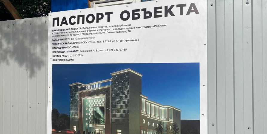 Мурманчане обратили внимание, что в паспорте объекта на реконструкции бывшего кинотеатра "Родина" нет срока окончания работ. На изменения обратили внимание читатели Nord-News.