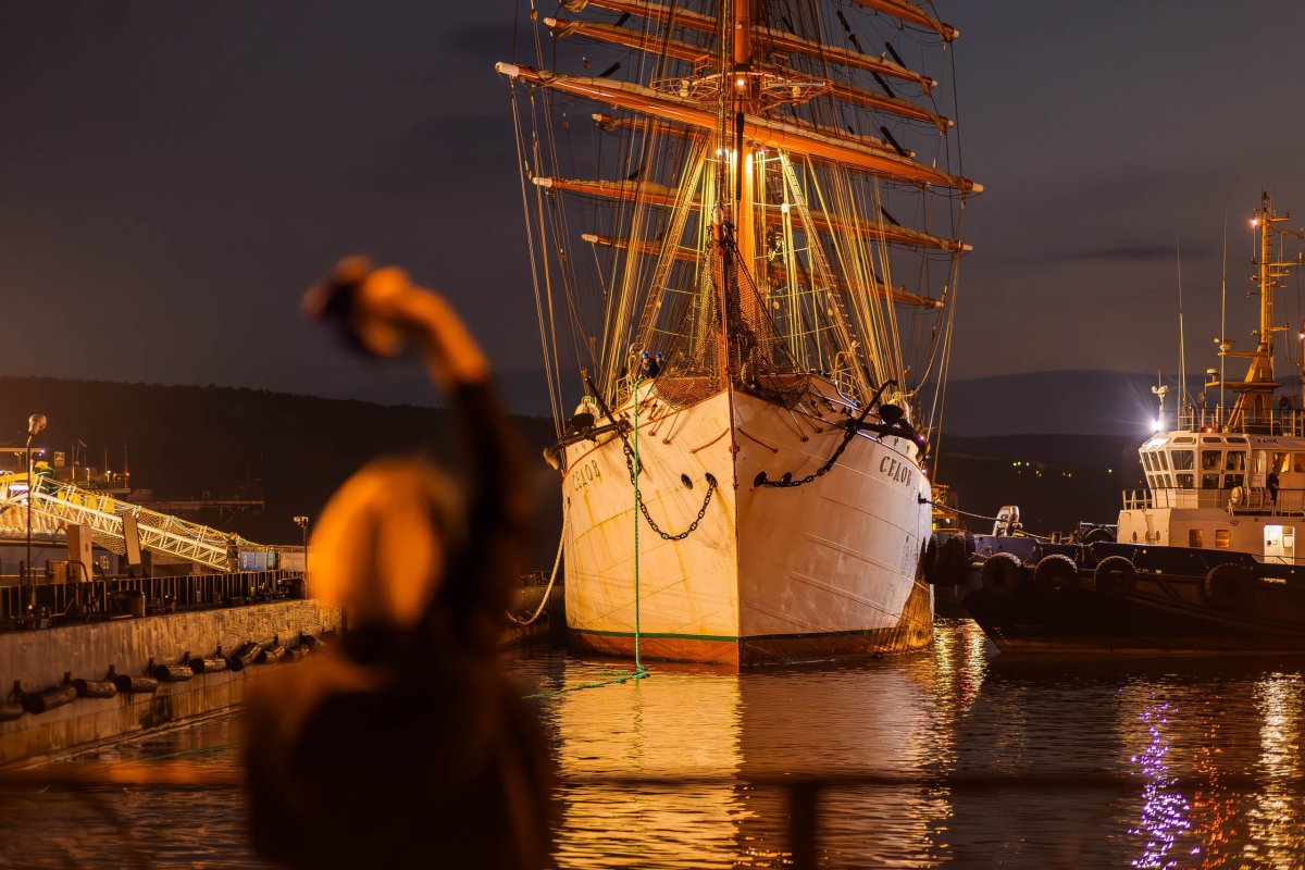 Вечером 23 августа 2024 года барк "Седов" пришвартовался в Мурманске. Он начал подходить к морвокзалу в 22:19.