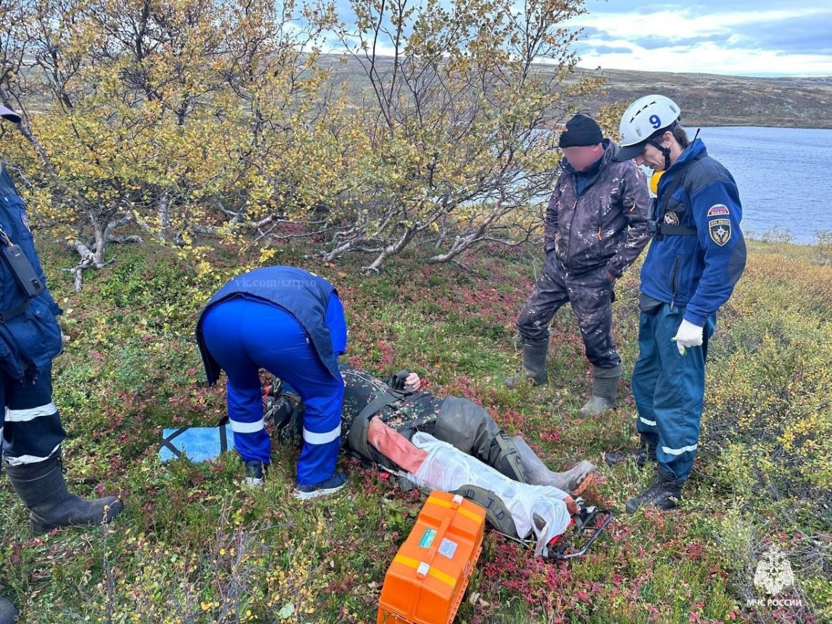 Информация о пострадавшем была передана спасателям Мурманского АКАСЦ - филиала СЗРПСО МЧС России. Они вылетели на вертолёте Ми-8 Ми-8 Территориального центра медицины катастроф для оказания помощи коллегам из Управления по ГОЧС и ПБ Мурманской области в эвакуации пострадавшего из труднодоступной местности.