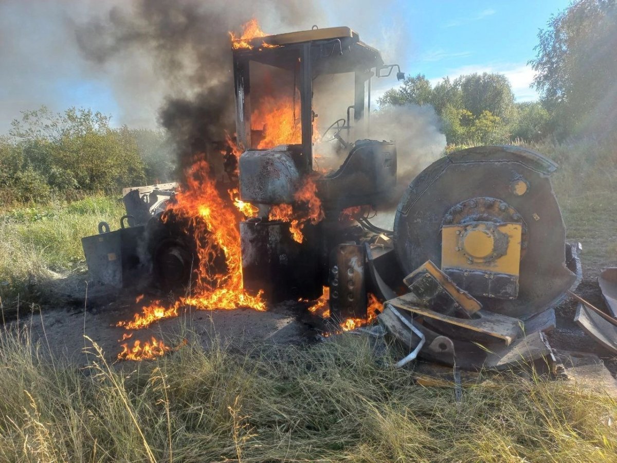 В результате пожара дорожный каток поврежден огнём по всей площади. Возгорание ликвидировано силами пяти огнеборцев и двух пожарных автоцистерн.