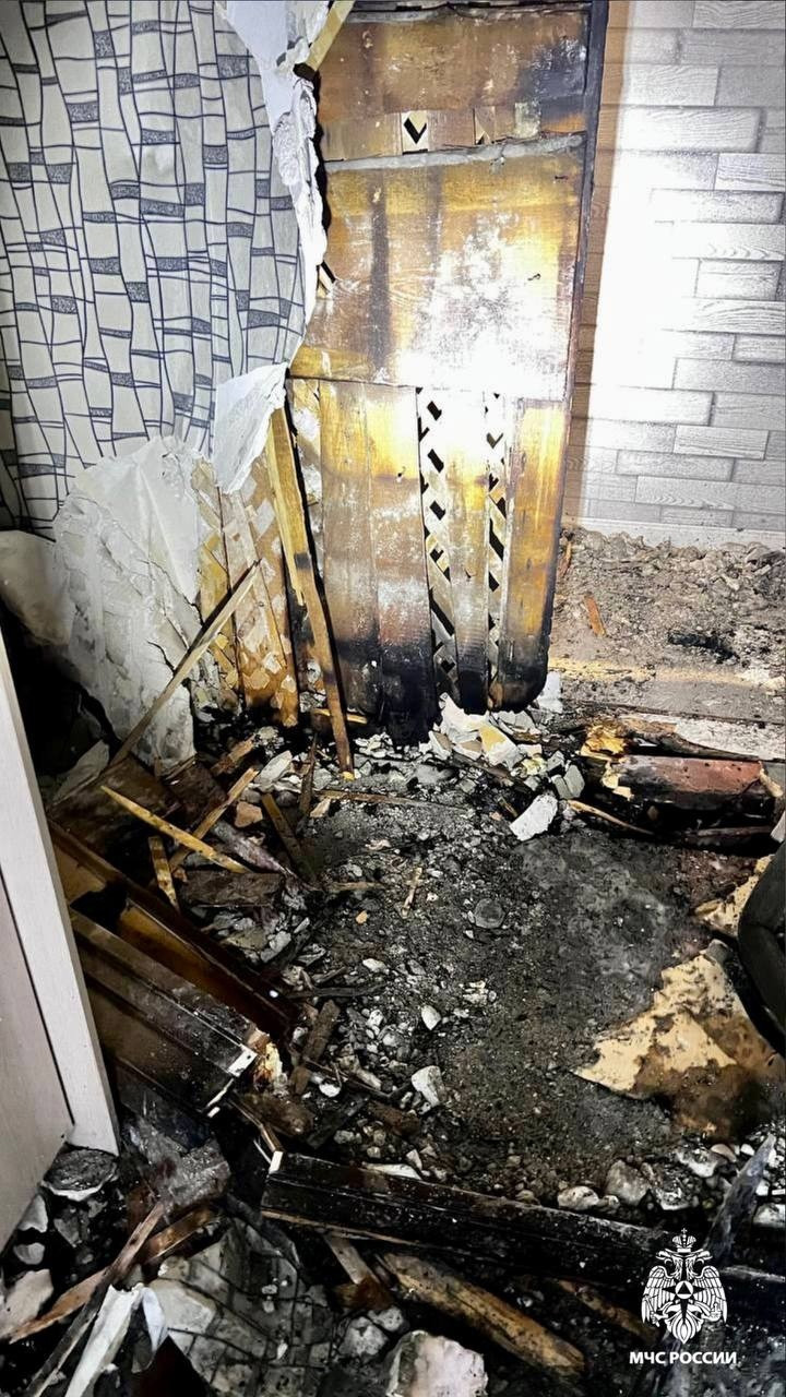 В результате происшествия в квартире обгорела стена на площади 5 кв. метров, в соседней квартире разобран потолок на площади 2 кв. метров.