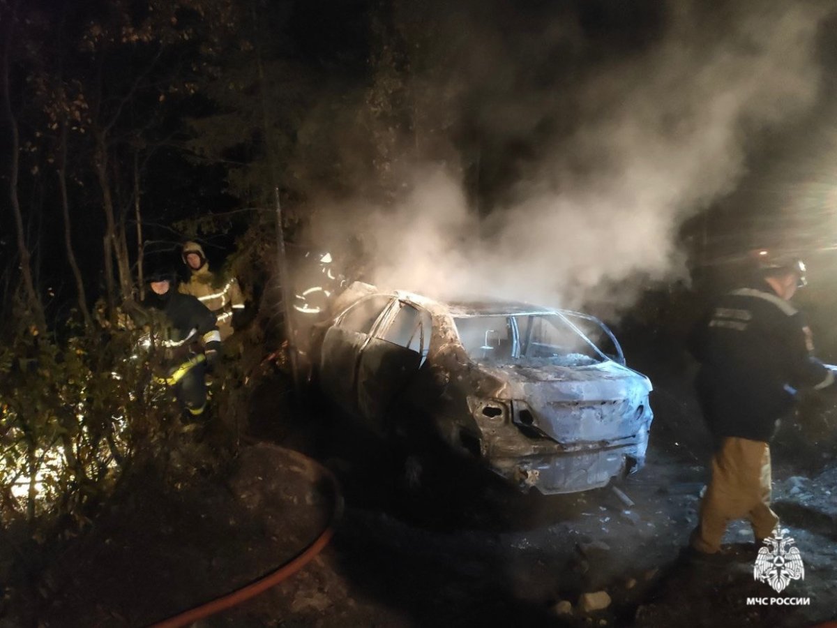 Одно пожарно-спасательное подразделение в составе восьми огнеборцев с привлечением двух единиц техники потушило автомобиль к 22 часам.