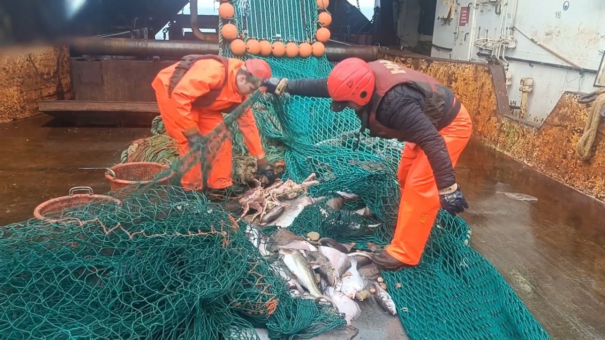На опубликованных кадрах с судна видны рыболовные сети, а также добыча – рыбы и крабы.