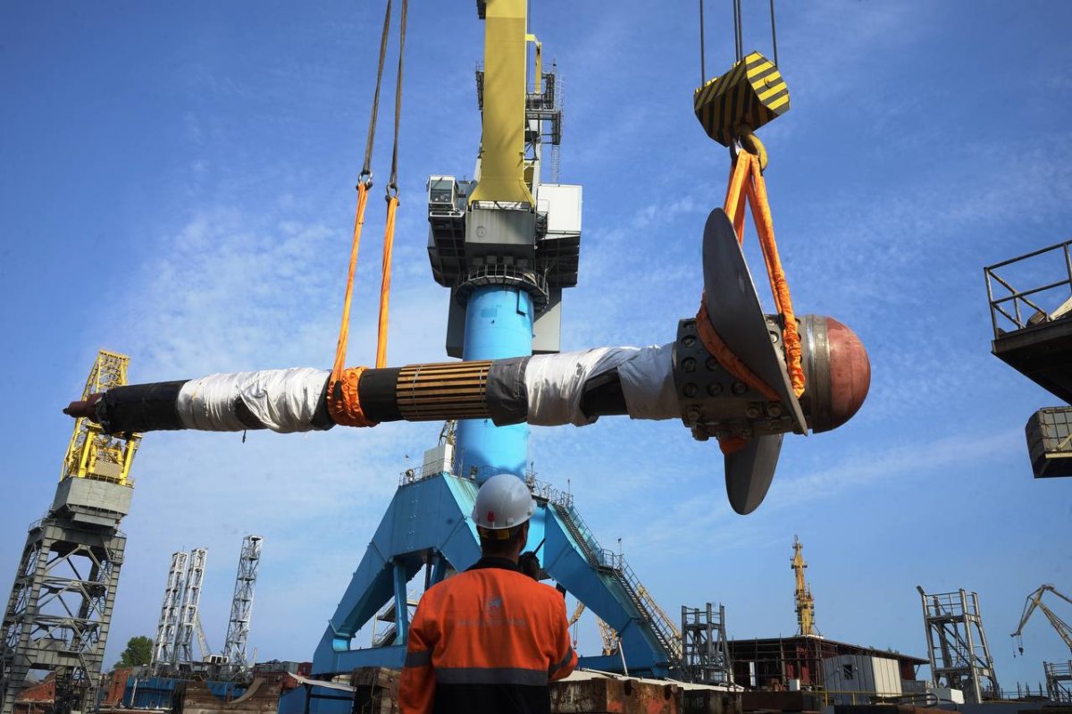 На универсальном атомном ледоколе «Чукотка» начался процесс монтажа валопроводов. Специалисты Балтийского завода ОСК погрузили на корму судна первый гребной вал, к которому крепится гребной винт ледокола.