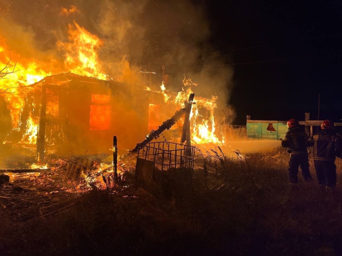 На момент прибытия пожарных строение было полностью охвачено огнём, существовала угроза распространения огня на рядом стоящие деревянные объекты.