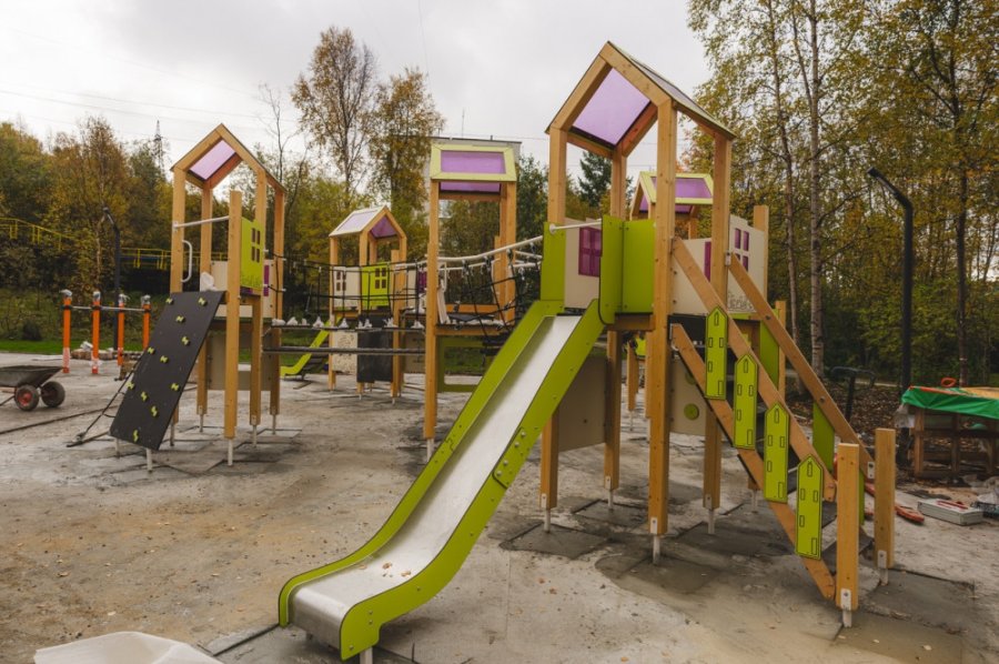В сквере уже обустроены пешеходные дорожки, установлены системы освещения и видеонаблюдения, а также игровое и спортивное оборудование для детей. В ближайшие дни будет уложено травмобезопасное покрытие для детского комплекса, подрядчик установит скамейки и урны.