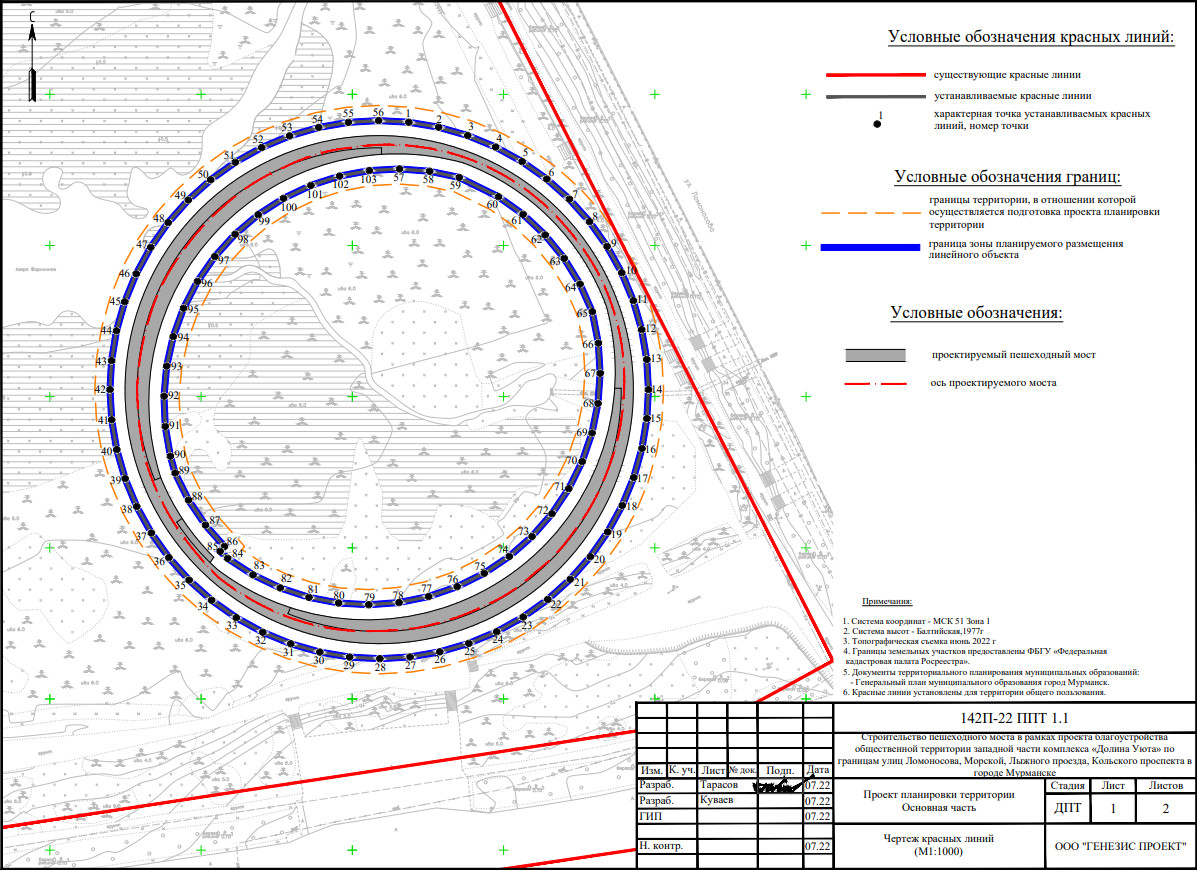 Изображение: Проект планировки территории, предусматривающий размещение объекта “Строительство пешеходного моста в рамках проекта благоустройства общественной территории западной части комплекса «Долина Уюта» по границам улиц Ломоносова, Морской, Лыжного проезда, Кольского проспекта в городе Мурманске”