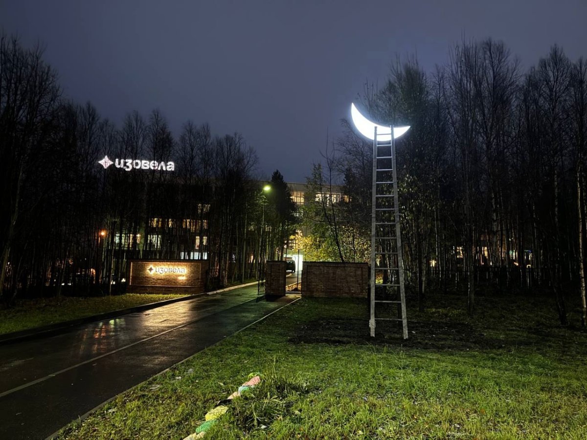 В Центре современного искусства "Сияние" в Апатитах появился новый арт-объект художника Леонида Тишкова "Лестница на Луну". Инсталляцию установили у ворот гостиницы-санатория "Изовела".