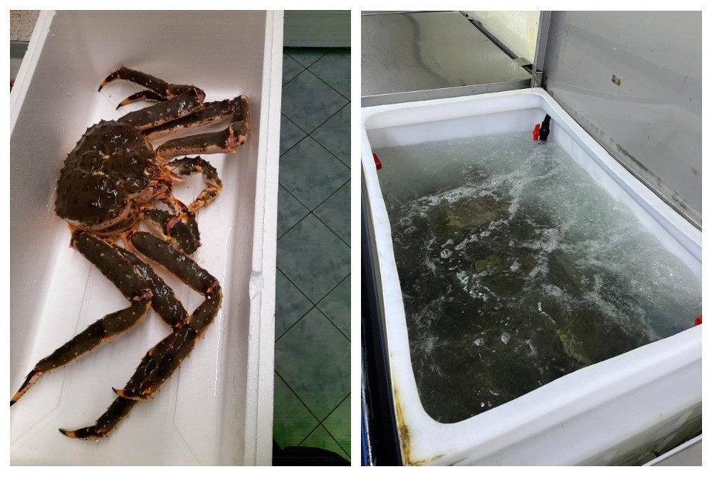 Крабов перевозят в ёмкостях с водой, оснащённых системами подачи кислорода и фильтрации воды