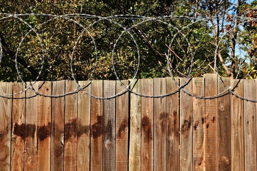 Деревянные заборы воришек не пугают, а скорее смешат. Перемахнуть такую преграду можно с легкостью. Но если «украсить» ограждение колючей проволокой, то защита станет чуть выше.