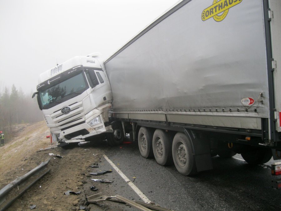 Информация об аварии на участке между 1166 и 1167 км трассы "Кола" поступила спасателям в 9:56. На место происшествия прибыл дежурный караул 60 пожарной части Кандалакшского филиала.