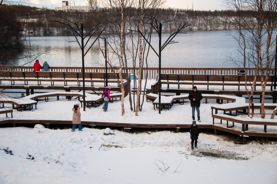Благоустроенная территория у озера Среднее стала точкой притяжения мурманчан.