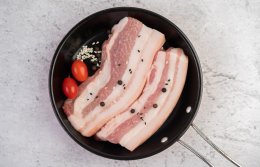 Нарежьте грудинку на кусочки размером 2-3 см. Положите в кастрюлю, залейте холодной водой, поставьте на сильный огонь и доведите до кипения. Когда вода закипит, удалите пену, слейте воду и промойте кусочки свинины под проточной водой.