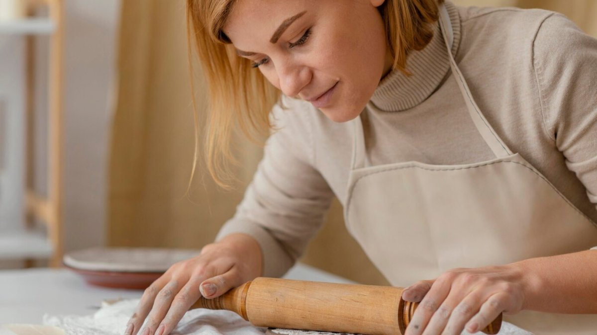 Разделите тесто на три части. Возьмите одну часть и сформируйте из неё тонкий жгут, затем разрежьте на 10 одинаковых кусочков. Прижмите каждый кусочек ладонью, а затем раскатайте его скалкой в тонкую круглую лепешку.